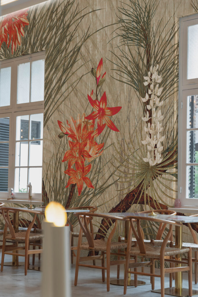 “The Zuza” by daisy james is a wallcovering with a distinctly tropical character. With lush floral motifs and warm colours, this design evokes a subtle holiday mood, instantly bringing a sense of summer luxury to any space. Its vibrant yet refined composition makes “The Zuza” particularly suited to interiors that embrace boldness without compromising on style. An ideal eye-catcher for hotel lobbies, home offices, or living spaces wherever a touch of exotic elegance is welcome.