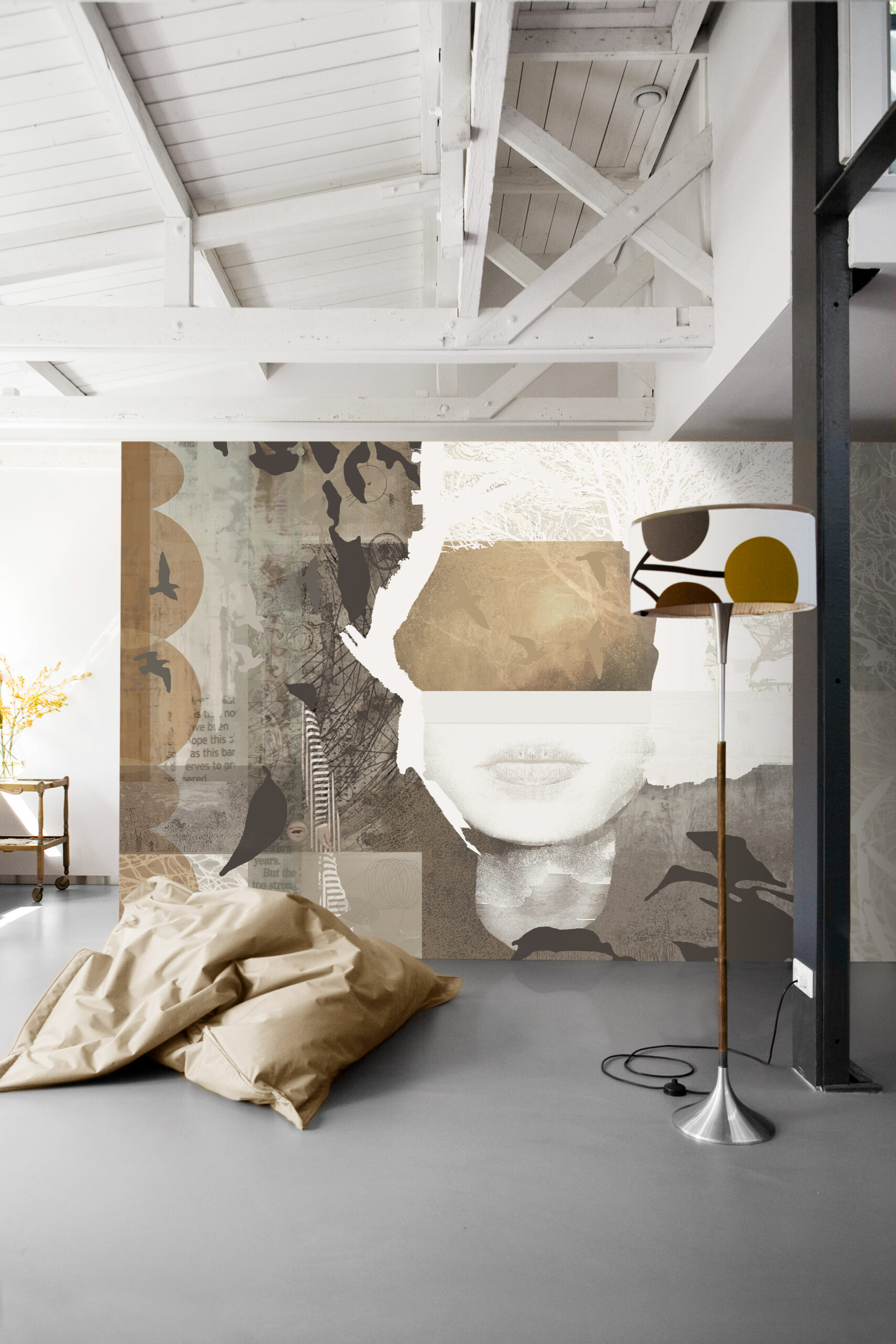 Add a refined, natural touch to your interior with “The Eve”, an abstract natural wallcovering by daisy james. This seamless design subtly reveals a face within abstract shapes, warm ochre tones, soft circles, and stylized leaves. Abstract birds elegantly weave through the pattern, bringing a playful and organic feel to your space. Inspired by the beauty of nature and shaped by contemporary design, this abstract natural wallcovering creates a seamless, artistic composition. Ideal for private homes, boutique hotels, modern offices, and creative studios. Thanks to its seamless application, the design flows effortlessly across your wall, transforming any room into a sophisticated, atmospheric statement.