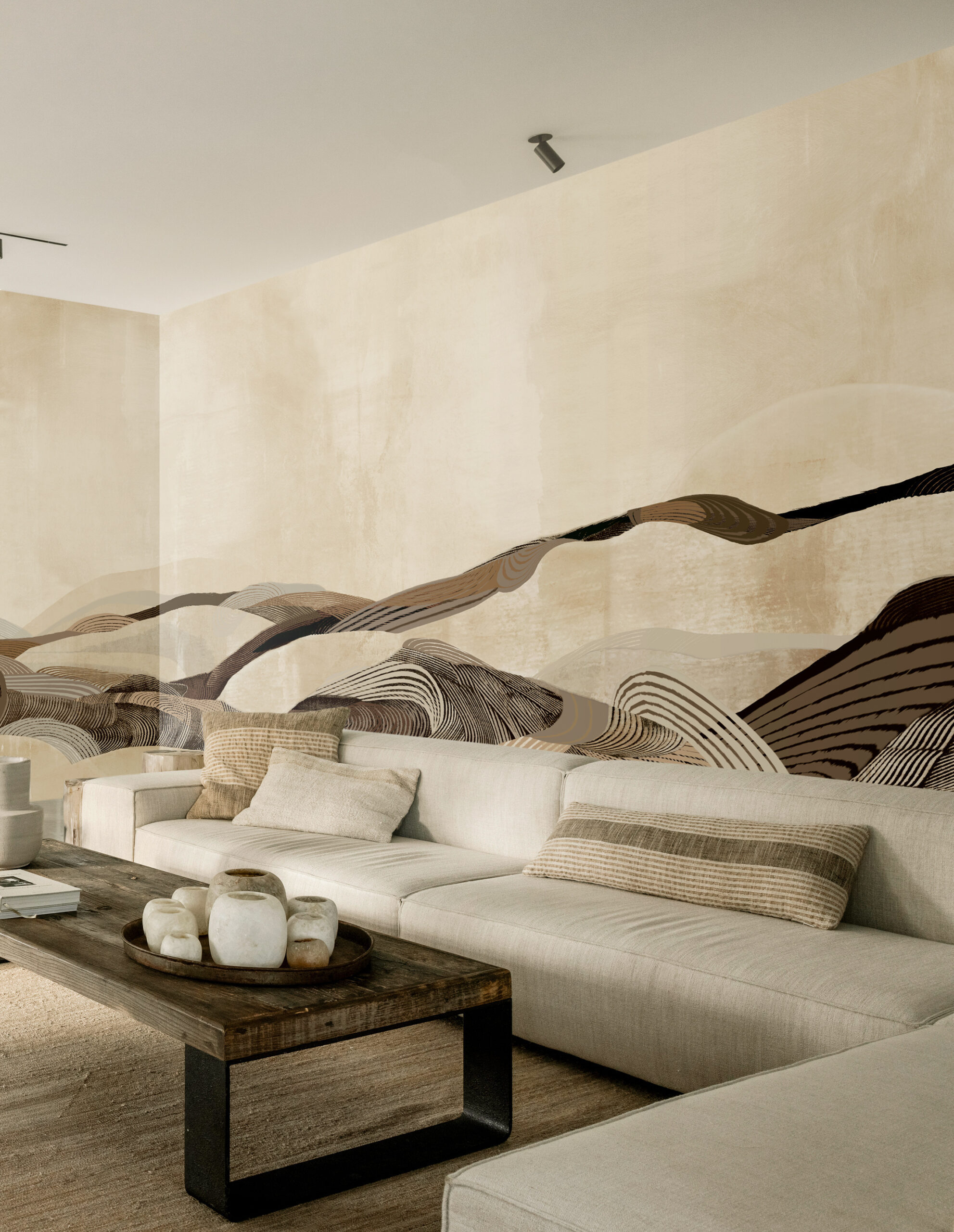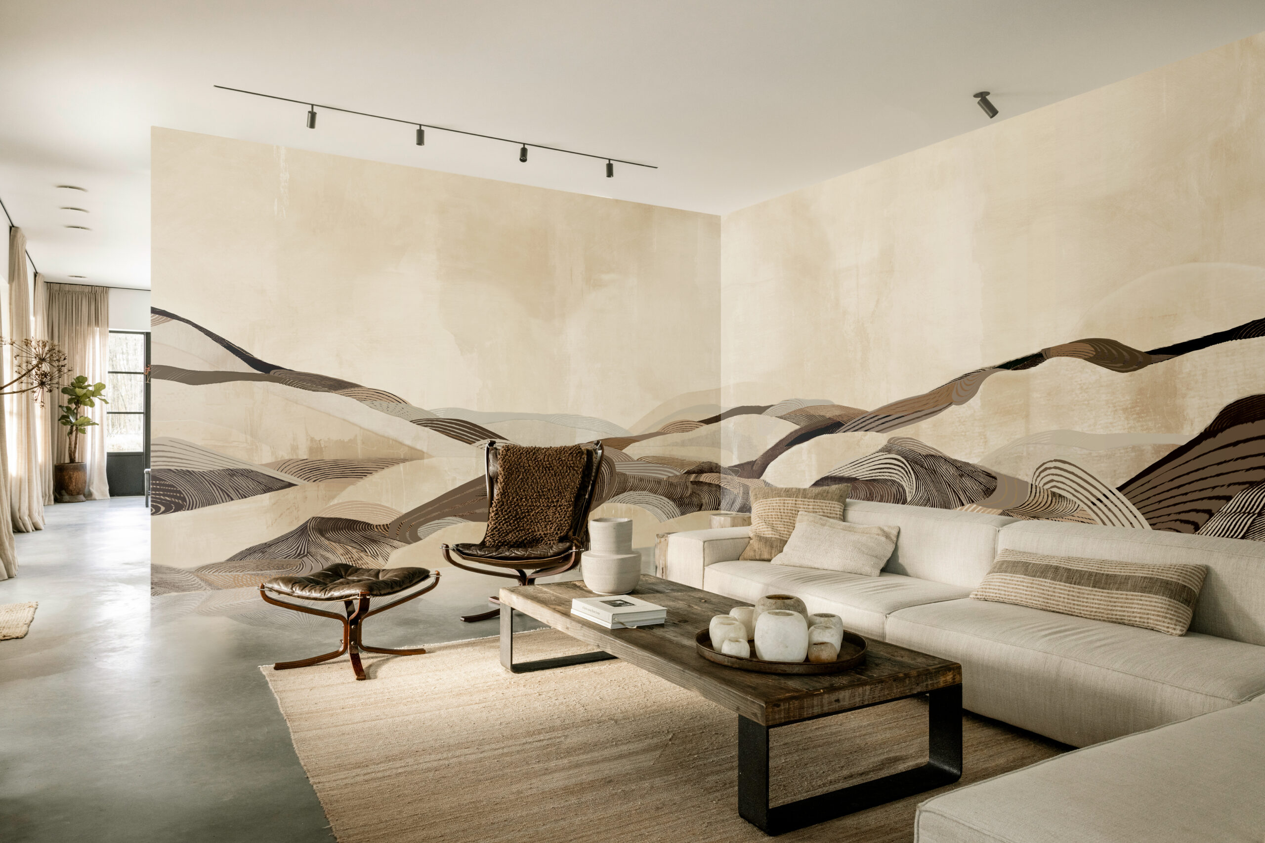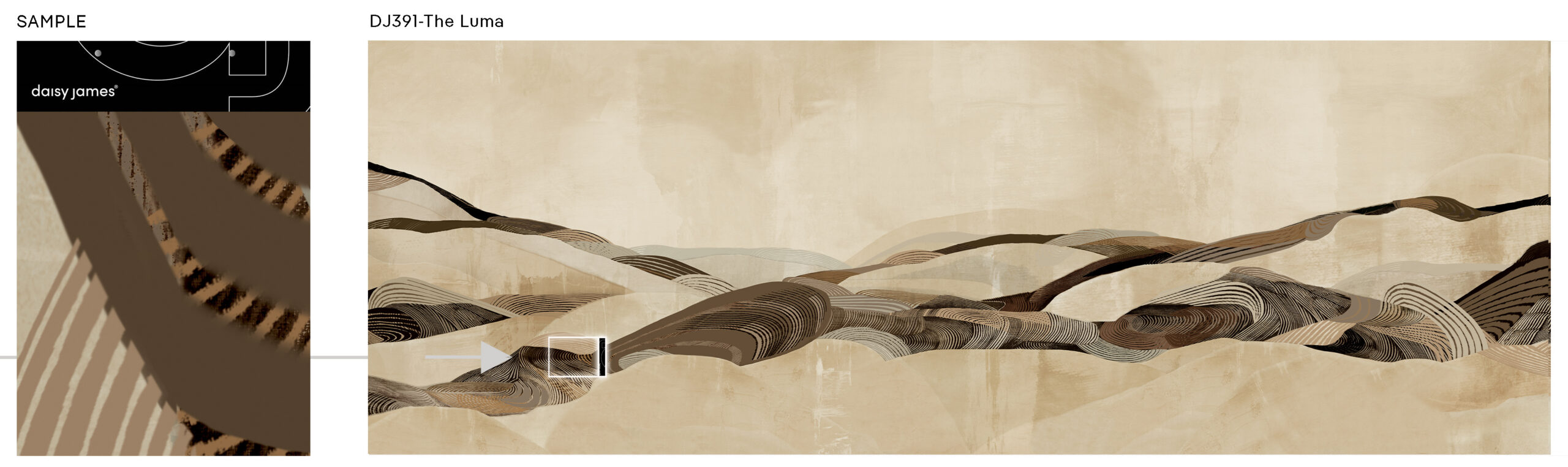 "The Luma" by daisy james is a wallcover that translates the essence of a desert landscape into a modern, abstract composition. Shades of sand, beige, and brown flow seamlessly together, creating a natural rhythm of horizontal fields and subtle brushstrokes. The result is an organic wallcovering that adds depth and character to any space. The delicate transitions between these natural hues give "The Luma" a timeless and serene appearance perfect for interiors seeking balance between natural warmth and contemporary sophistication.
