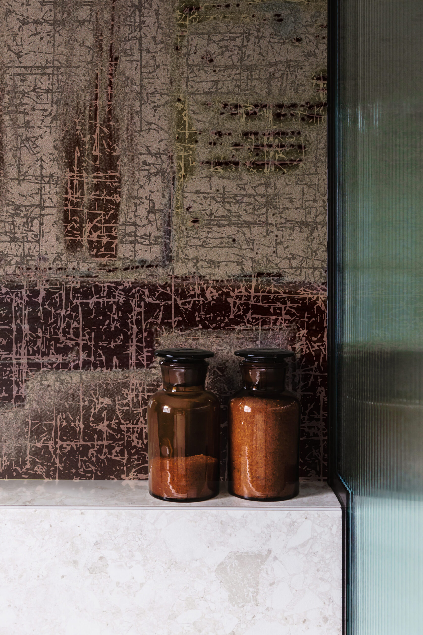 The colour palette is composed of deep brown and beige tones, layered with warm blue accents that bring balance and calm to the composition. This muted yet expressive combination creates a sophisticated and timeless look. “The Plane” feels both architectural and soft, making it a versatile choice for interiors that value materiality, texture, and understated luxury.