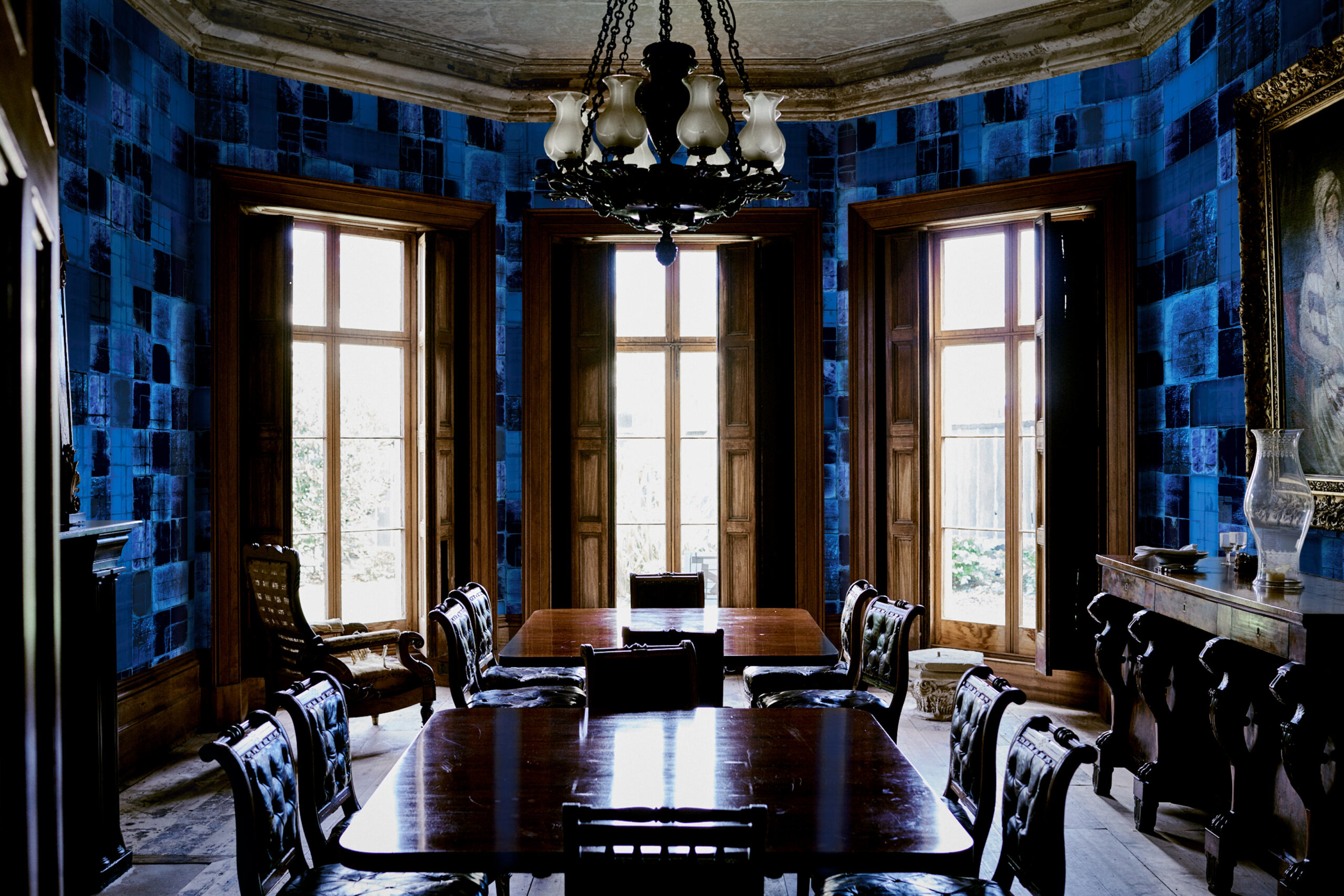 • Accents in copper, black, or matte gold enhance the royal blue tones and add a touch of modern sophistication.