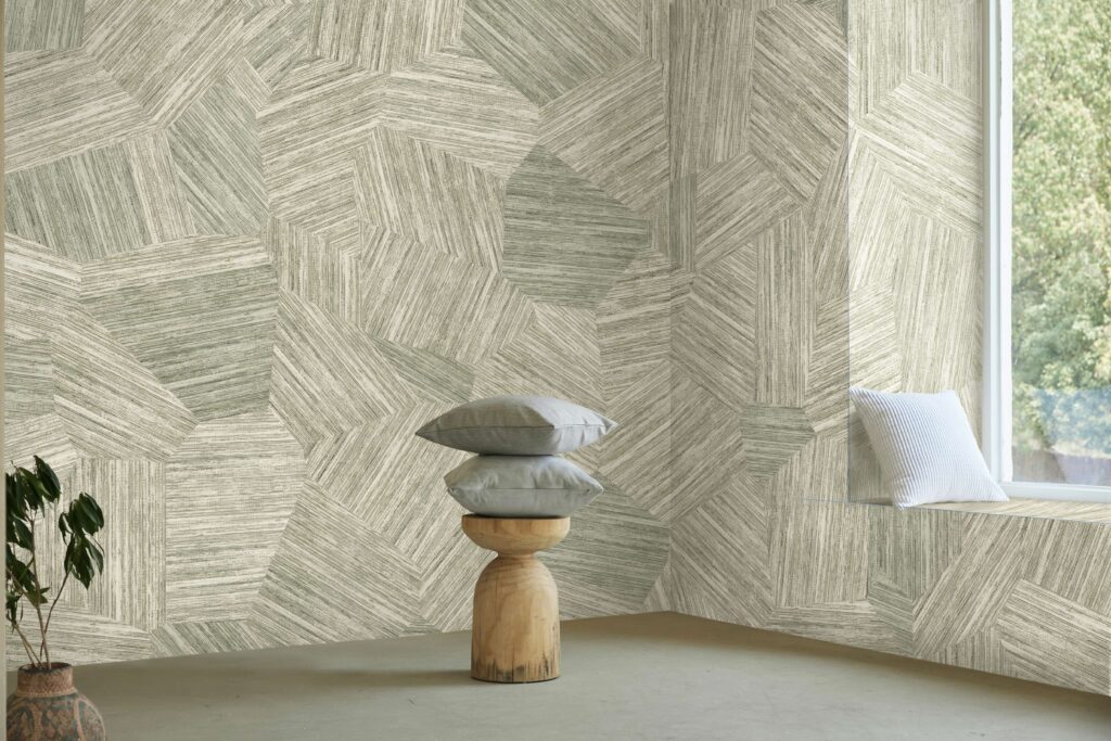 “The Lyne Beige”  by daisy james is a refined wallcover that plays with light, lines, and balance. Subtle stripes are arranged in soft panels, each with a different direction, creating a calm rhythm that feels both structured and organic. The gentle green tones bring freshness and serenity to any space, while the shifting lines add depth and understated elegance. Perfect for interiors that seek harmony, sophistication, and a natural sense of flow. With its minimalist character and timeless aesthetic, “The Lyne Beige”  transforms walls into serene statements of style a true reflection of the daisy james design philosophy.