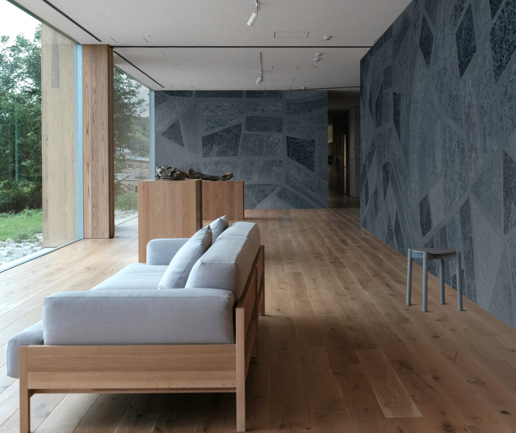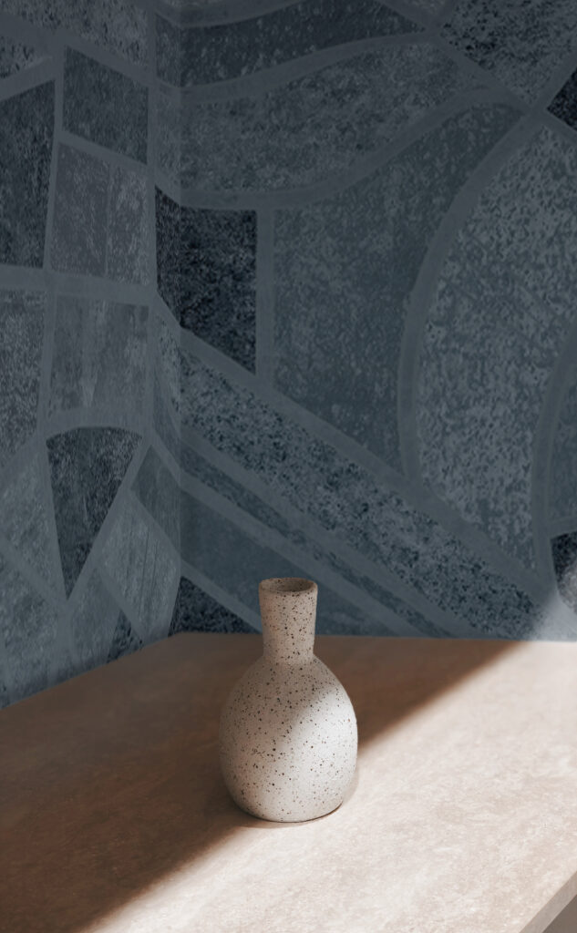 Abstract wallcover “The Blues” by daisy james features a continuous surface composition in multiple blue tones. The design runs across 8 meters without repeat, creating a single, uninterrupted visual field. Variations from deep blue to denim-inspired shades create a controlled tone-on-tone effect, while subtle transitions give the surface a layered, textured appearance. Designed to work seamlessly with the linen-like structure of the material, “The Blues” offers a refined and contemporary finish for modern interiors.