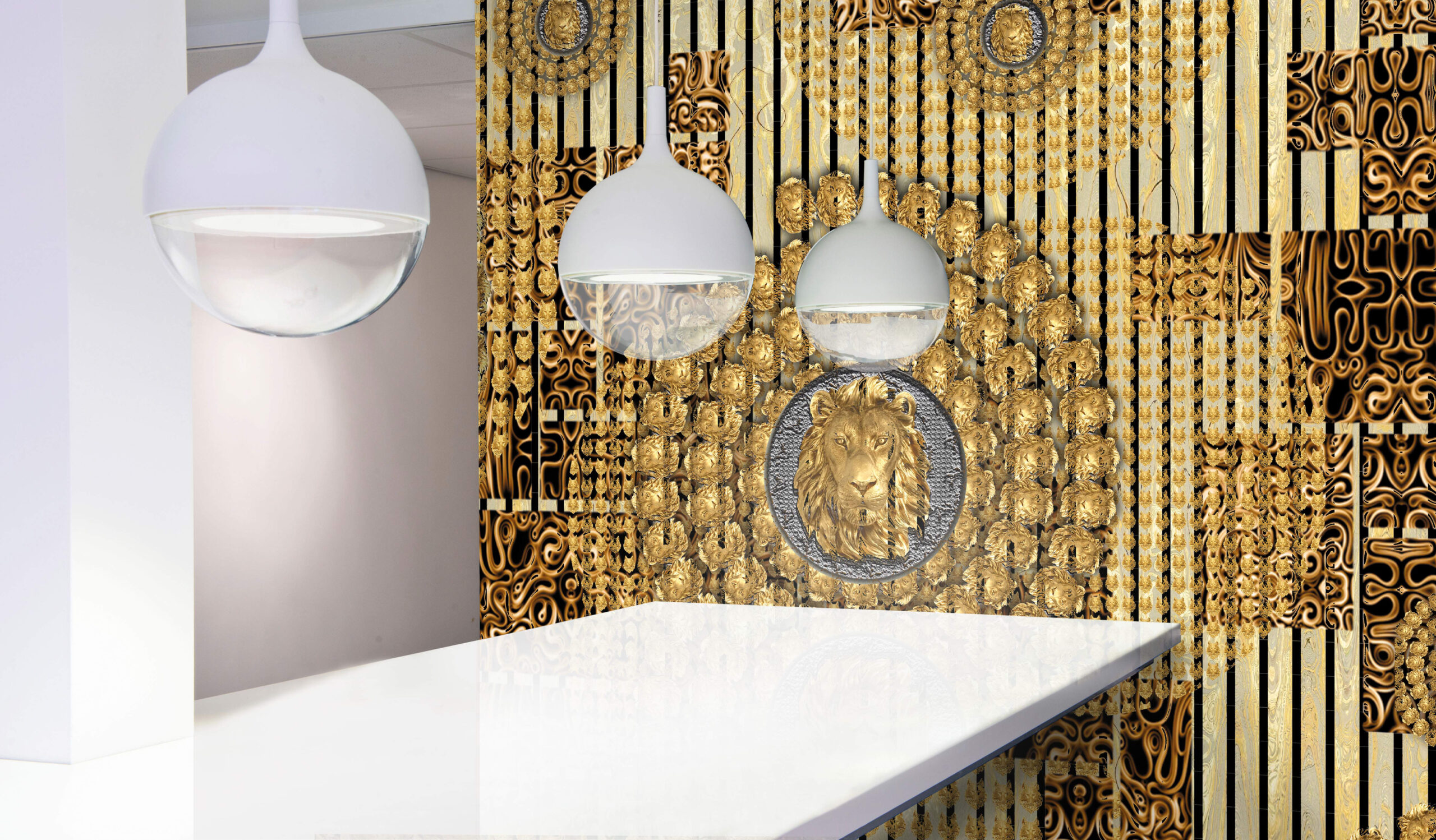 The lion has symbolized power, wealth, and pride throughout history. As a majestic creature, it commands awe and admiration. If you seek to leave a lasting impression and evoke a jaw-dropping “WOW effect,” look no further than “The Golden Lion” designed by daisy james. This design captures the essence of grandeur and extravagance, making a bold statement that will undoubtedly impress all who encounter it.—————————————————————————————————————————————————————————————————————————————————————————————————————————————————————————————————————————————————————– “Discover how “The Golden Lion” was used in one of our interior projects. See the result here.”